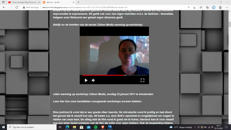 Op donderdag 17 maart 2011 kondigde ik in o.a. de Telegraaf, de Sp!ts (zie artikel beneden) , de VPRO Gids, de Veronica Gids en via mijn filmblog aan dat mijn bedrijf Citizen Media Valkenburg a/d Geul de eerste feature film over de moord op Theo van Gogh ging produceren, dat gebaseerd was op de eerste ruwe versie van 't manuscript: ‘Delirium?!’ genaamd (dat toen nog naar de werktitel 'Ondergangsgelovigen' luisterde. Wat volgde kan het best omschreven worden als een media-oorlog: de naargeestige, door en door ver(s)linkste woke-media - met name de NPO - stortte zich met veel propagandageweld op ons meesterwerk. Mede hierdoor strandde de film eind 2012 in de pre productionele fase. In de jaren daarna werkte ik zowel 't script als de ruwe manuscriptversie uit naar de roman die 't vandaag, dinsdag 2 november 2020 is geworden. Nu de romanversie van 'Delirium?!' na bijna 15 jaar sappelen overal te koop is, kijk ik hoofdschuddend terug op het geweld van toen.